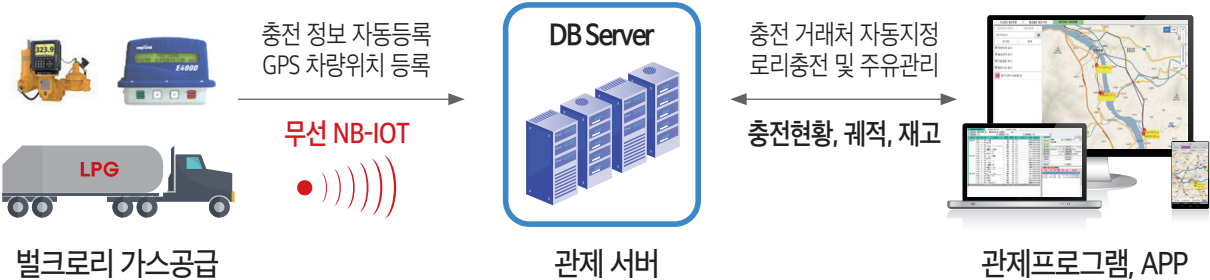 탱크잔량 원격감시, 절체기 원격감시, 계량기 원격검침, 벌크로리 충전관리 등의 기능을 제공합니다.